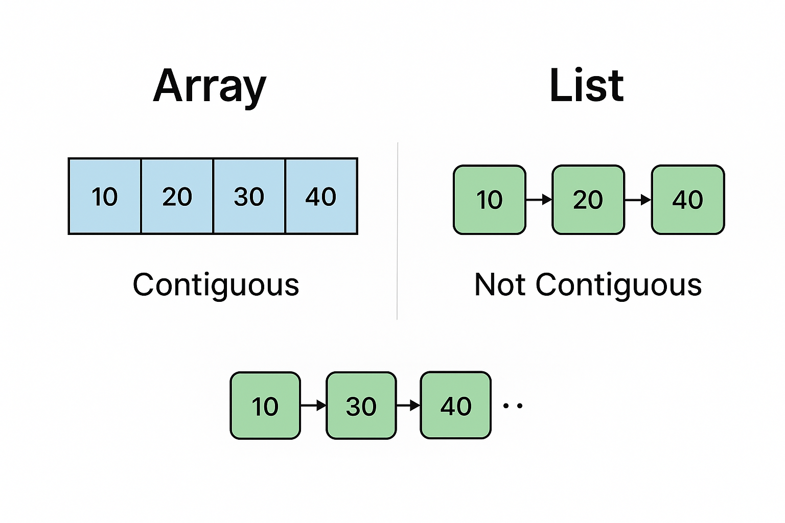 - 단, 데이터 접근에 대해서 단순히 인덱스(0번째, 1번째) 가 아닌 포인터를 통해 연결되기 때문에 값을 찾는게 상대적으로 시간이 더 걸림