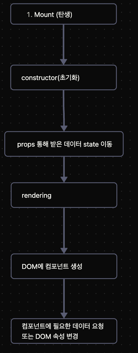 Mount는 화면이 처음 렌더링 되는 그 순간을 의미하는데 자세하게는 이런식으로 동작합니다.